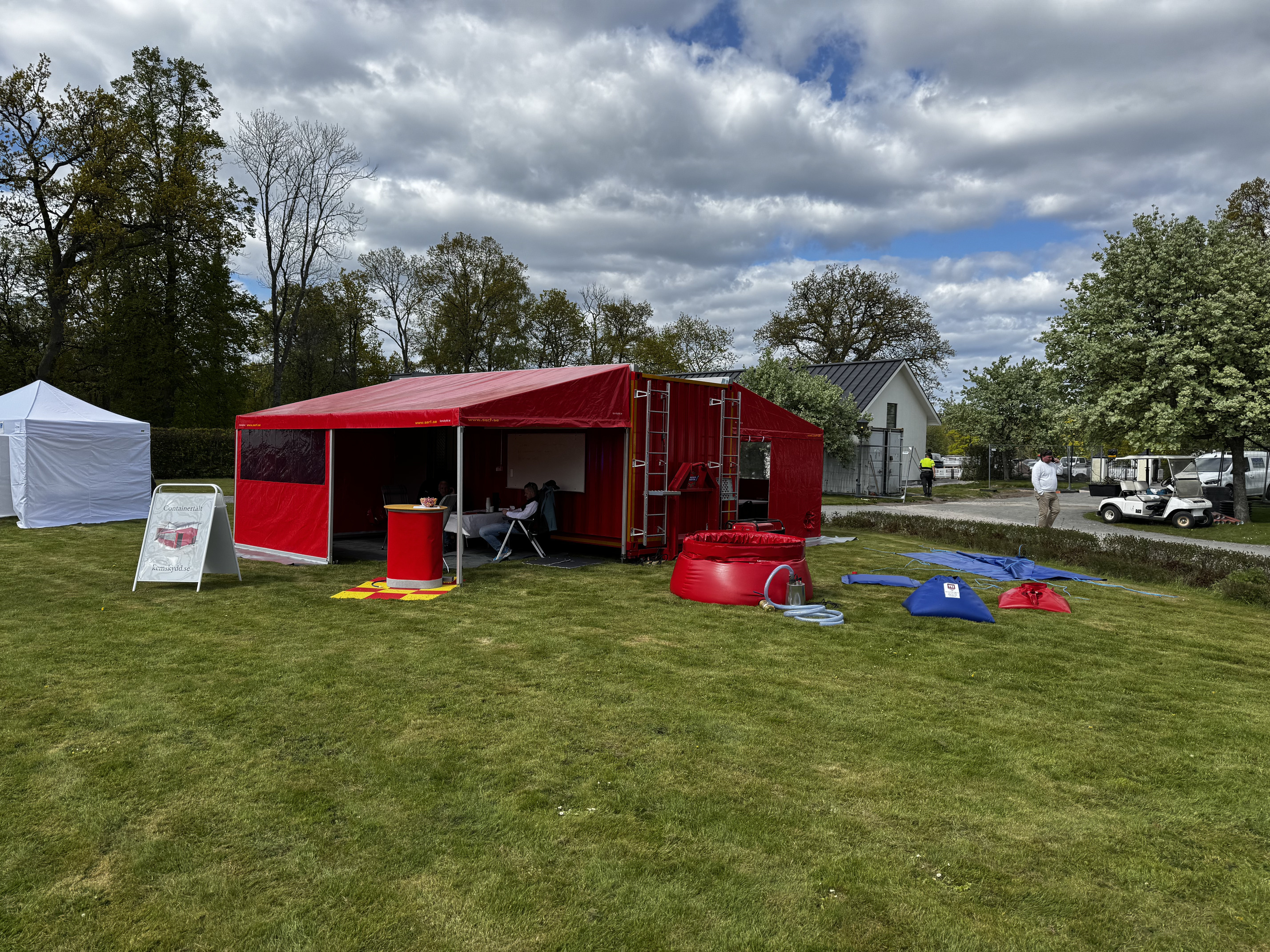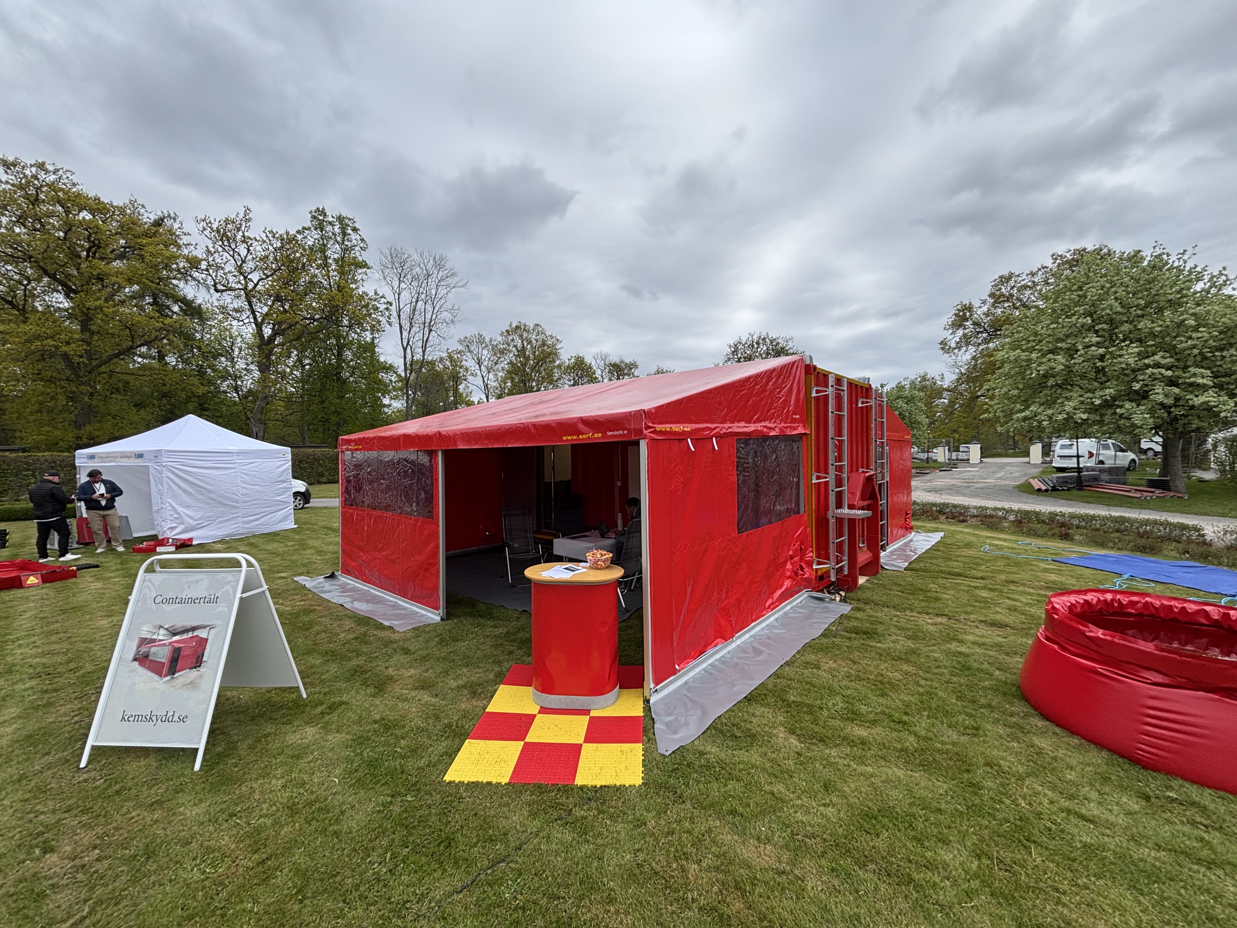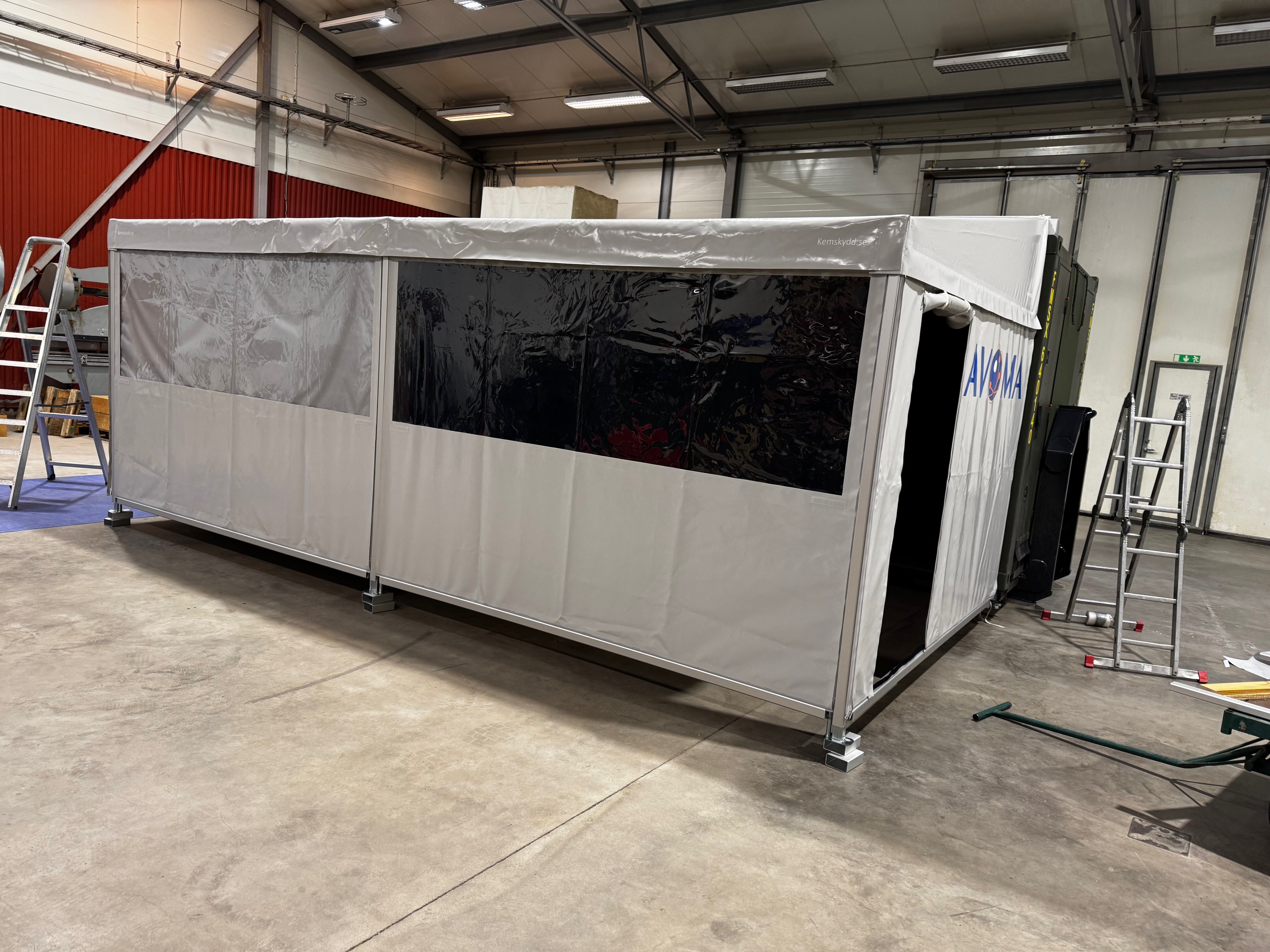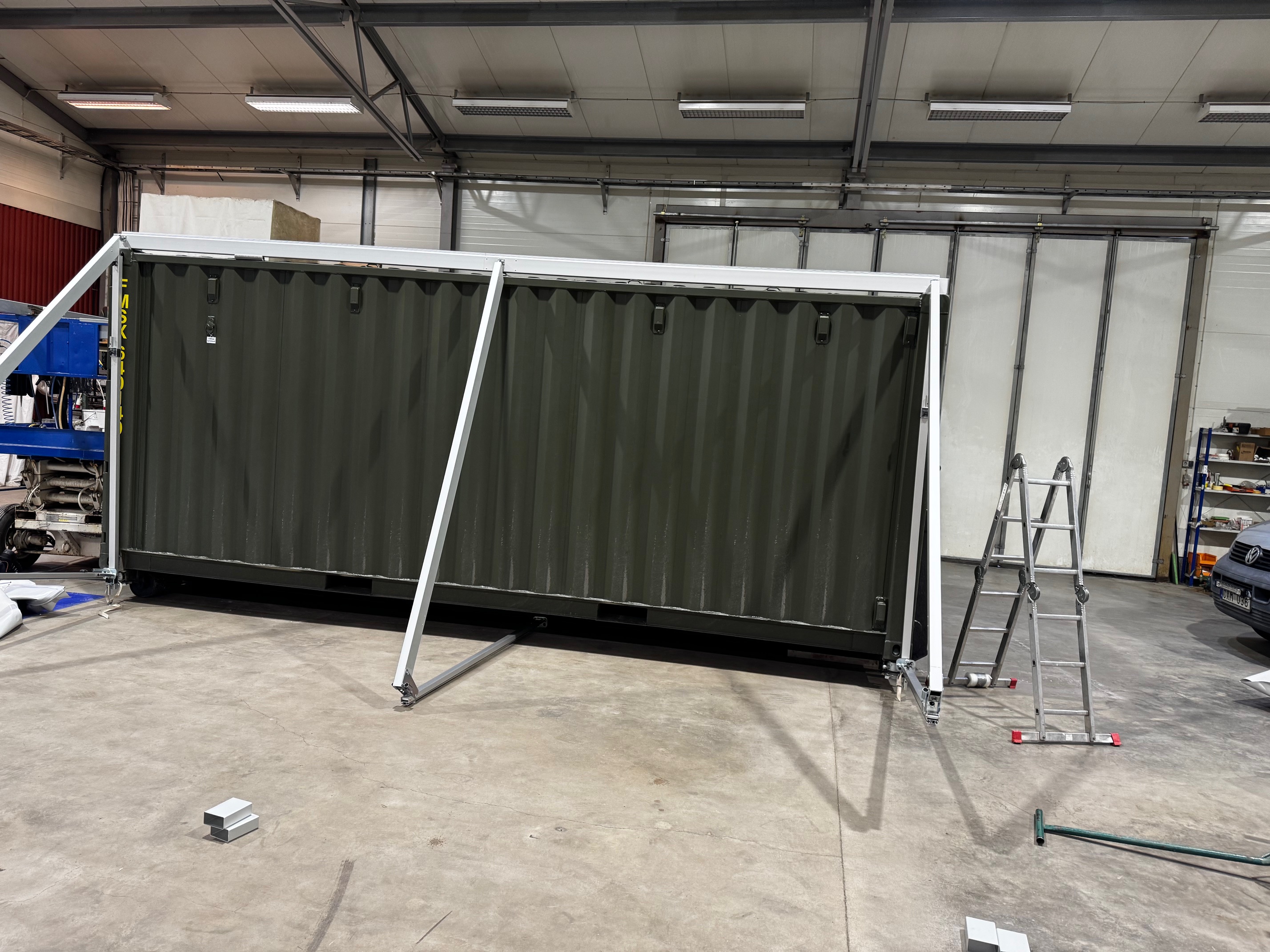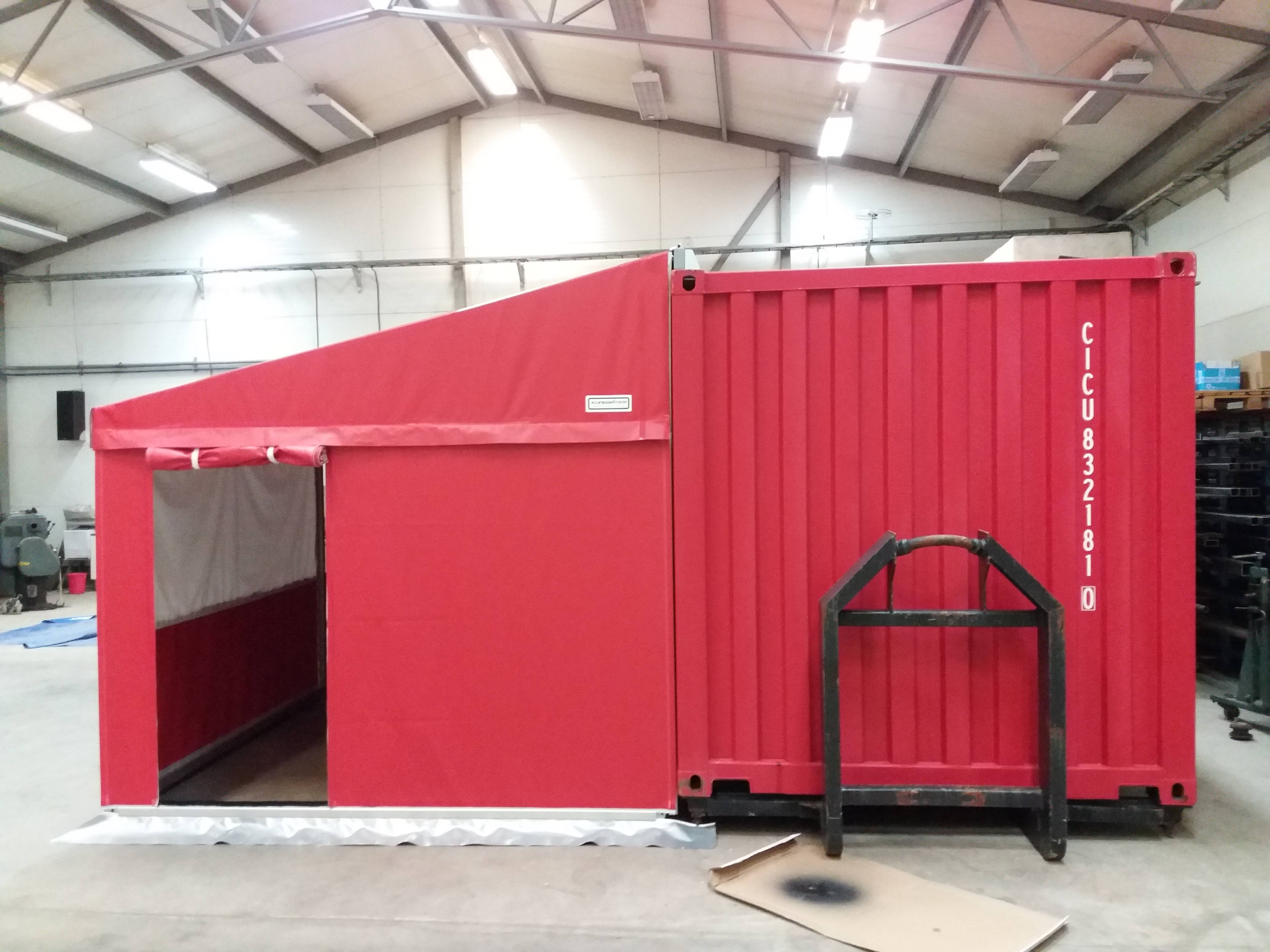 We have developed a tent for a 20ft container together with the fire brigade in Sweden. You can easy assemble the tent with 2 people. The tent can be used to store equipment, use as weather protection or as a communications center. There is an air inlet on the end where you can connect a heating fan. Everything can be easily stored in the container during movement.