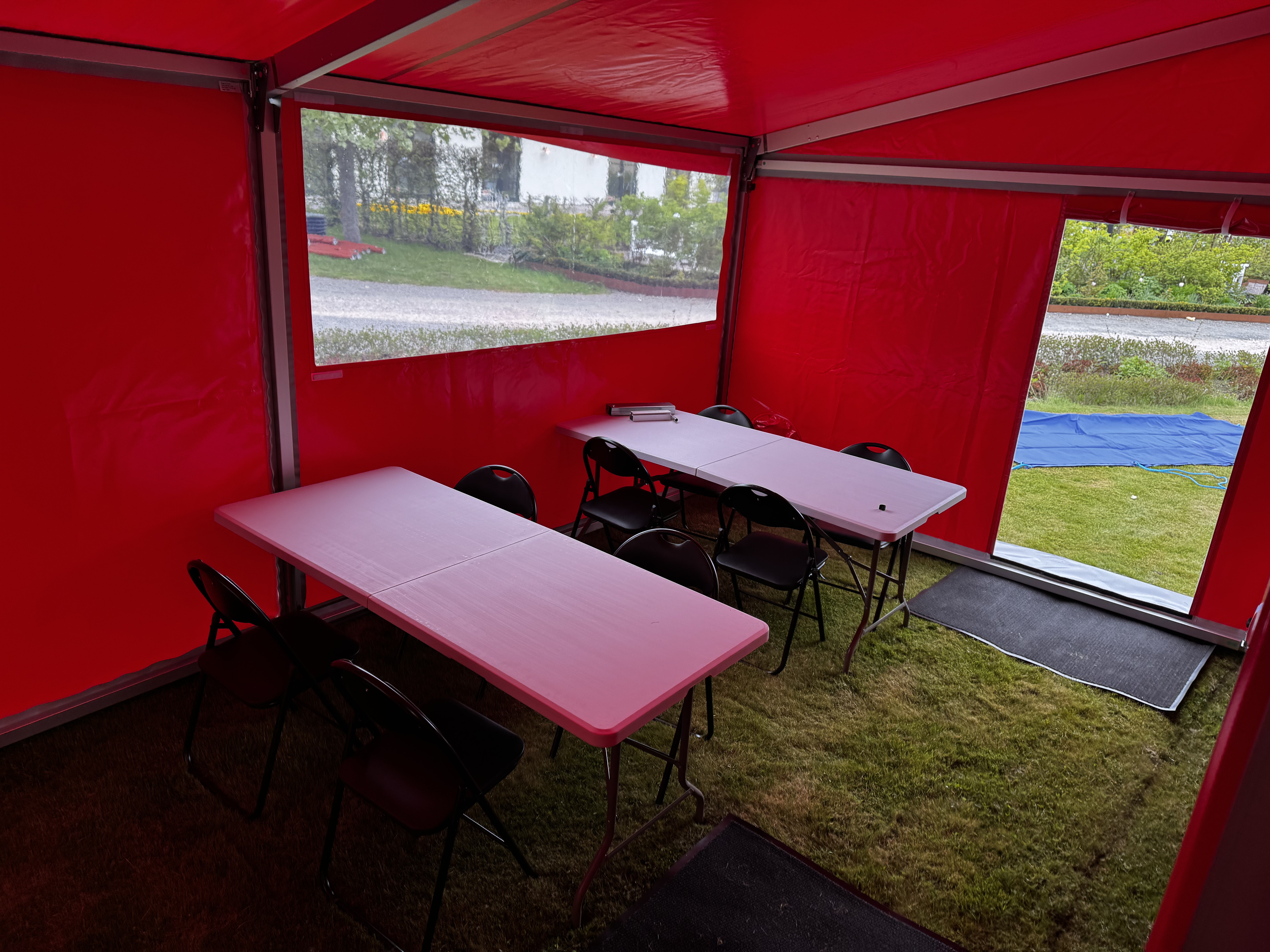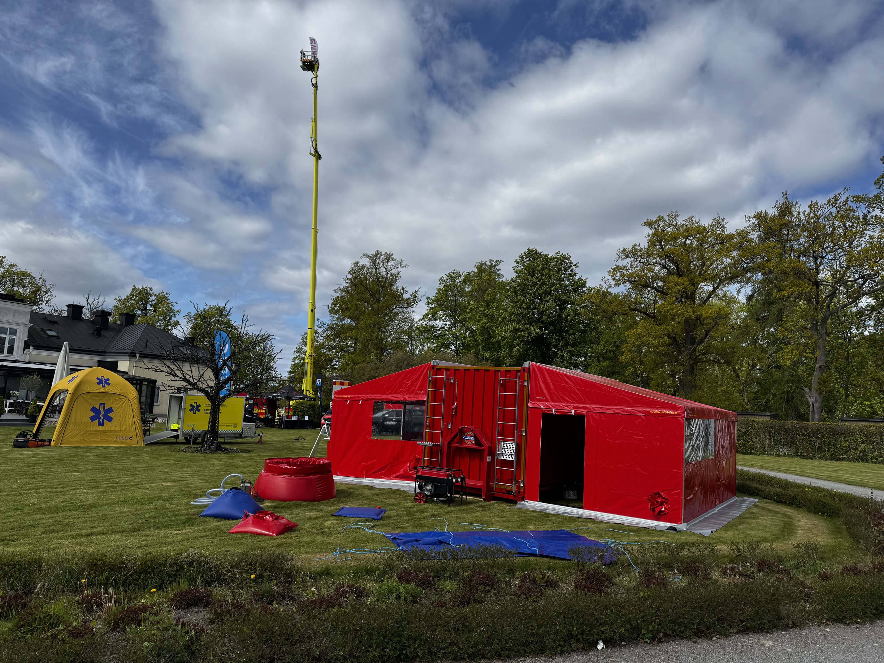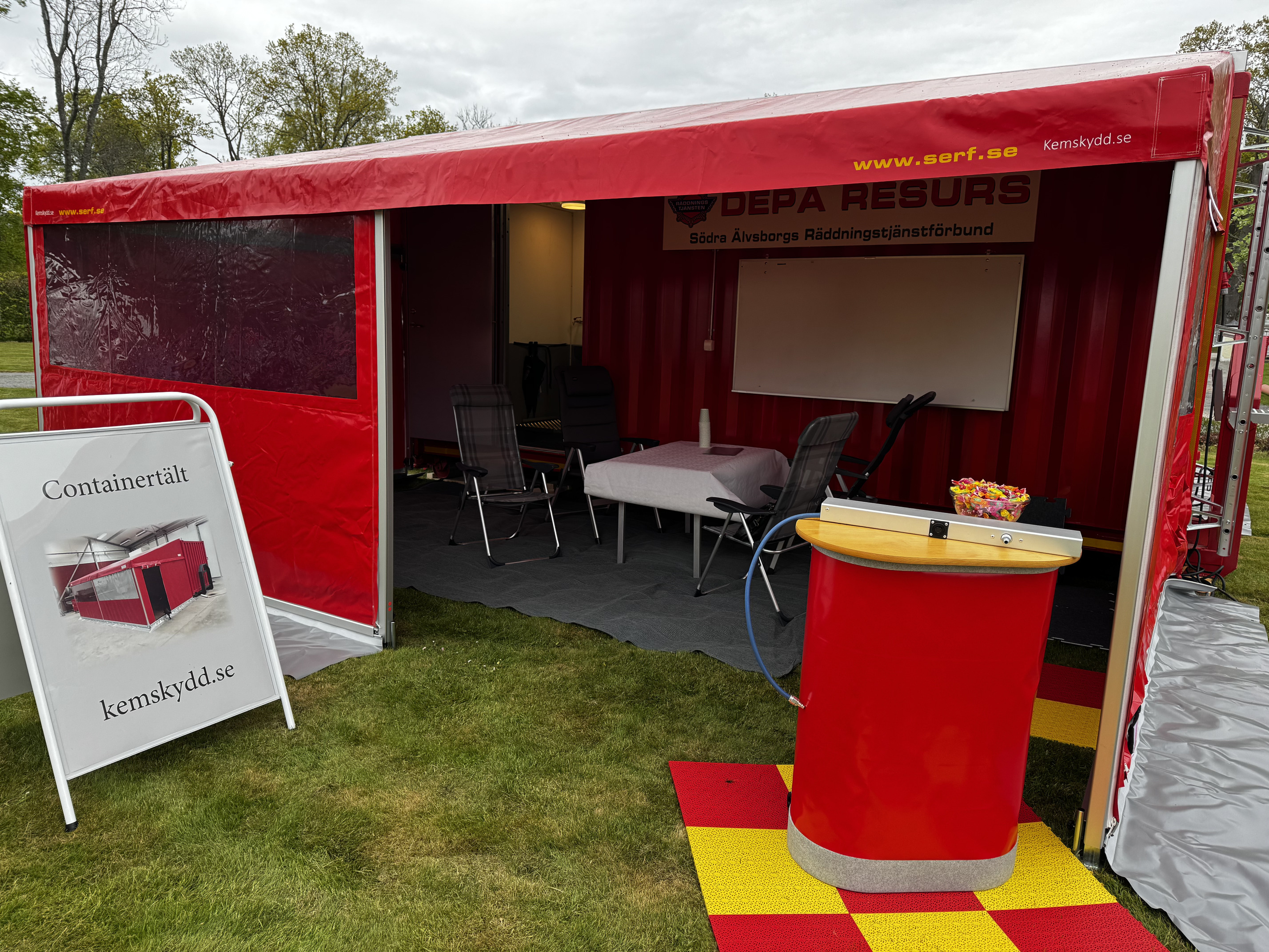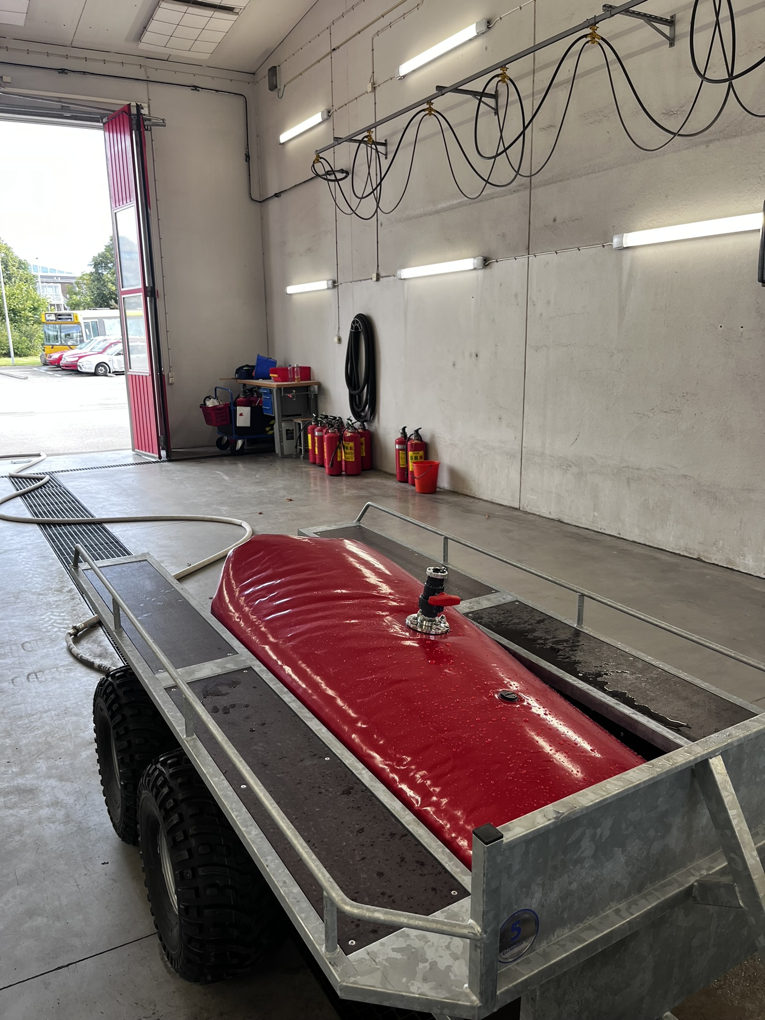We have developed a tent for fire engines with a folding door together with the fire department. They have many female firefighters and this means that they can change in the tent without being seen. It also works as a rain and weather protection. Some fire engines also have a heat outlet in that cabinet so you can use it as a heating tent.