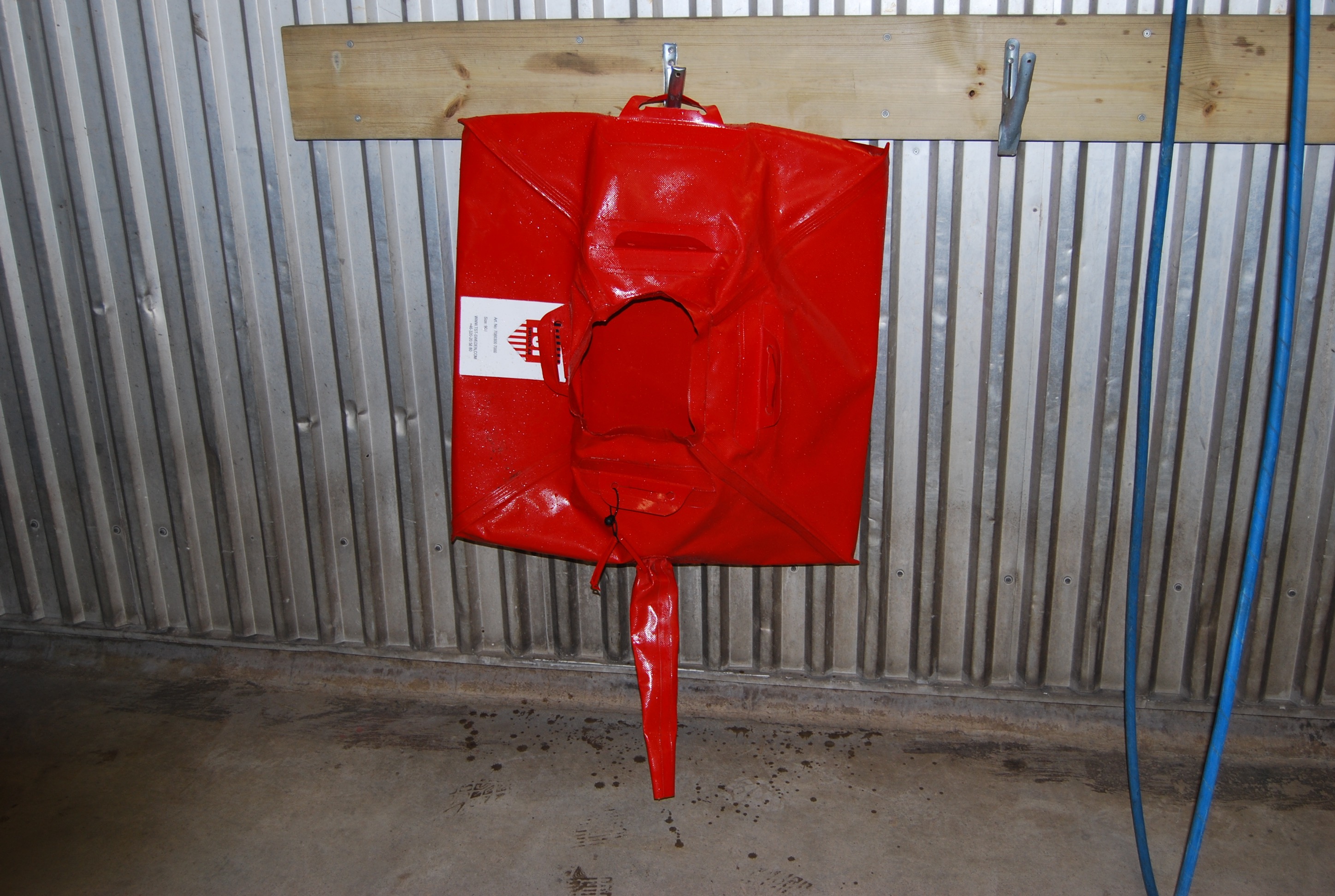 This product is best stored filled with liquid (use glycol outside in winter) and can thus be very quickly placed over a well or similar as a seal. It weighs 45 kg filled and is equipped with carrying handles on both sides.